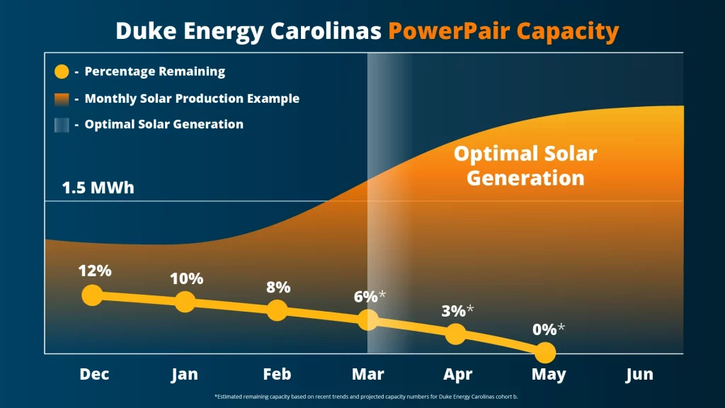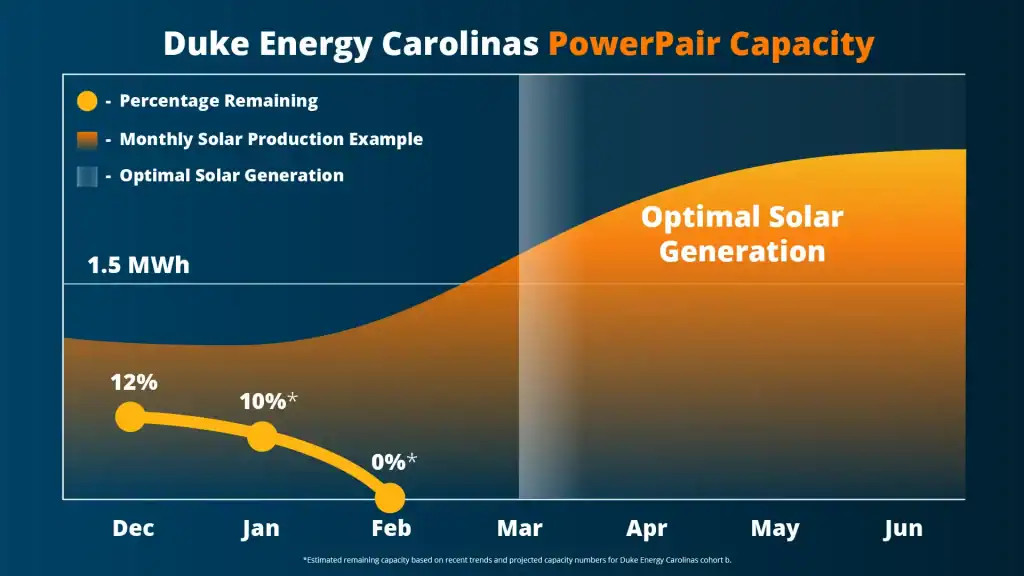 Put simply, the chart shows that PowerPair capacity is likely to run out just as the Carolinas enter the prime solar season. The months when your panels would be producing the most energy are the same months when PowerPair may already be closed to new participants.